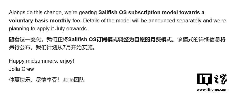 旗鱼 Sailfish OS 订阅模式被 Jolla 放弃:系统更新需年付 25 欧元
